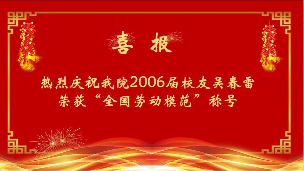 热烈庆祝公司2006届员工吴春雷荣获“全国劳动模范”荣誉称号